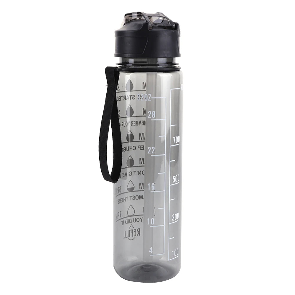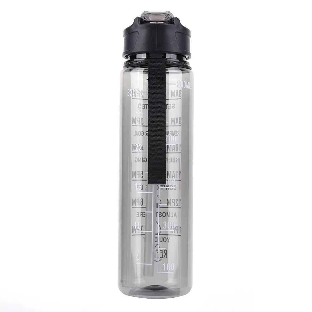 800ml Water Bottle Leakproof Motivational Drinking Bottle for Sports (Black)