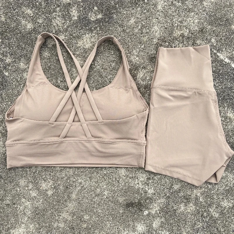 Yoga Clothes Set 2 Piece Gym Sports Shorts Set Women Cross Back Bra Top High Waist Shorts Fitness Suit Running Workout Tracksuit